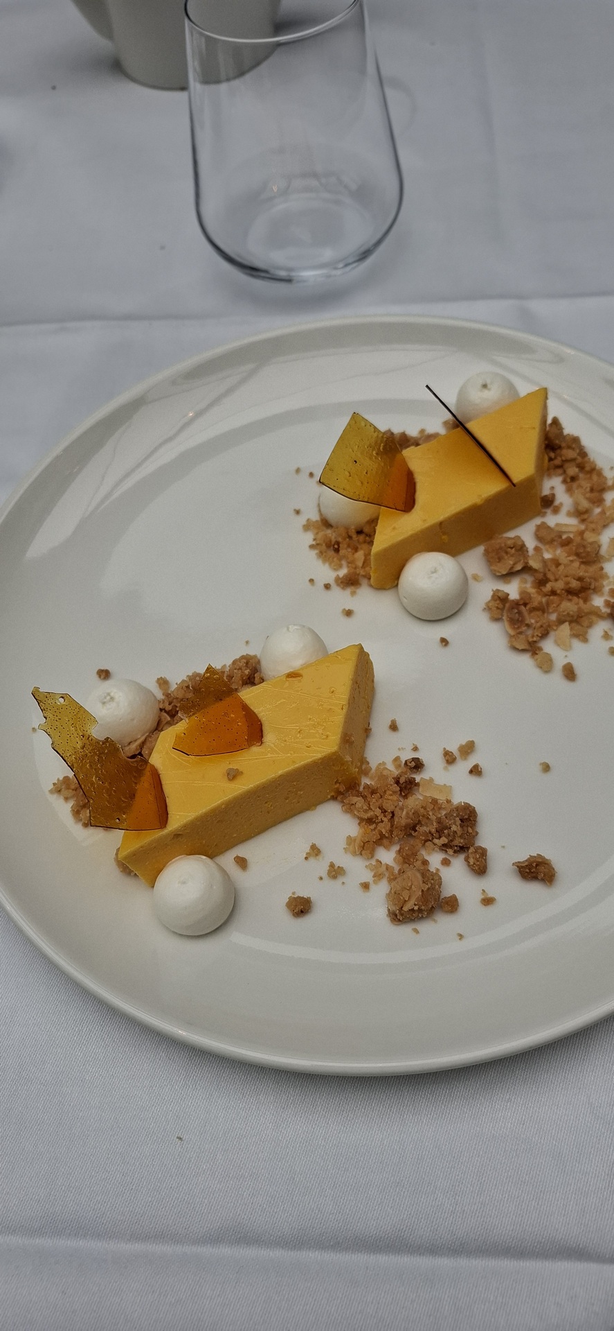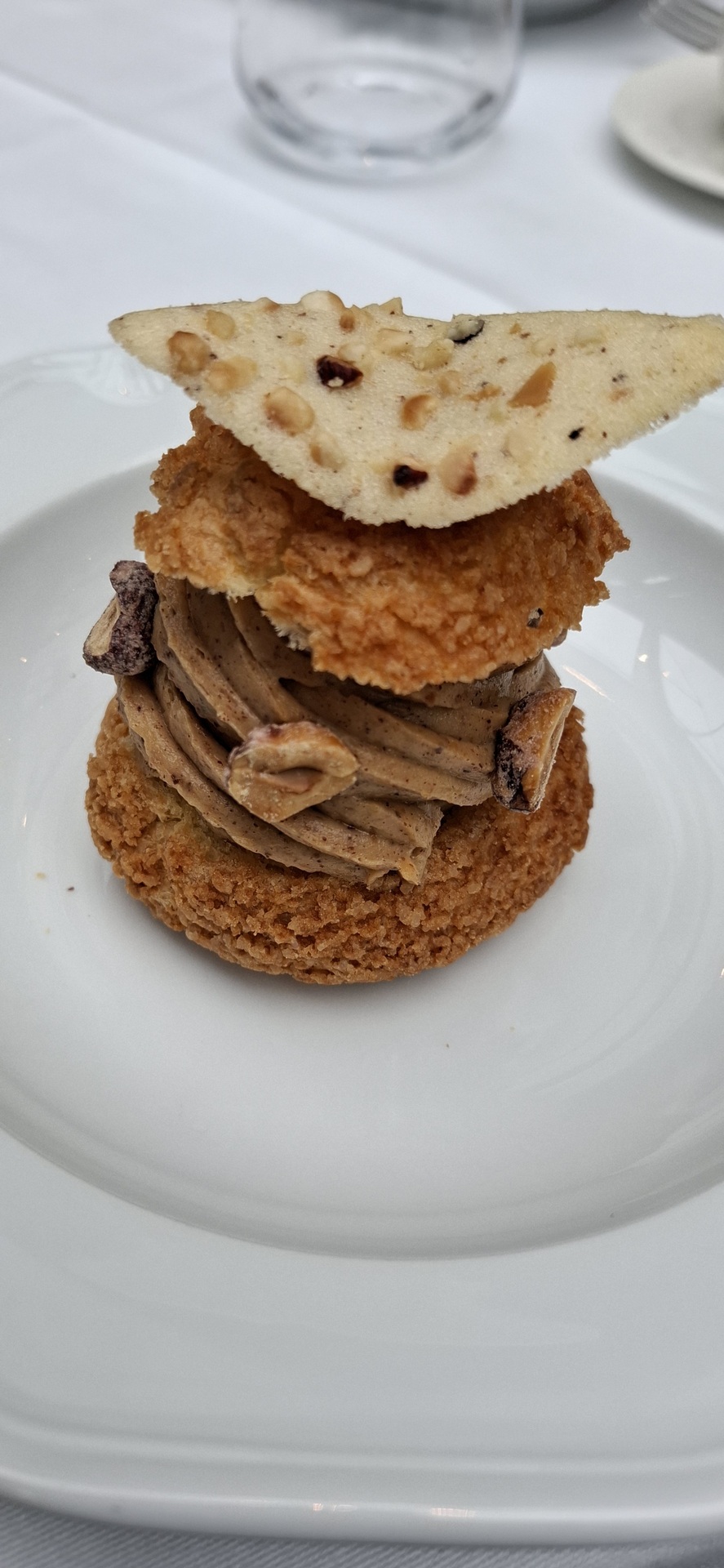 Ce jour-là, j’ai choisi un plat unique, simple et raffiné : un cabillaud snacké accompagné de lentilles vertes de la ferme de Férolles, relevées d’une touche de saté et d’une émulsion de crème d’ail. Une assiette à la fois équilibrée et savoureuse, parfaitement maîtrisée. Mes collègues, quant à elles, se sont laissées tenter par des desserts élégants et tout aussi réussis.