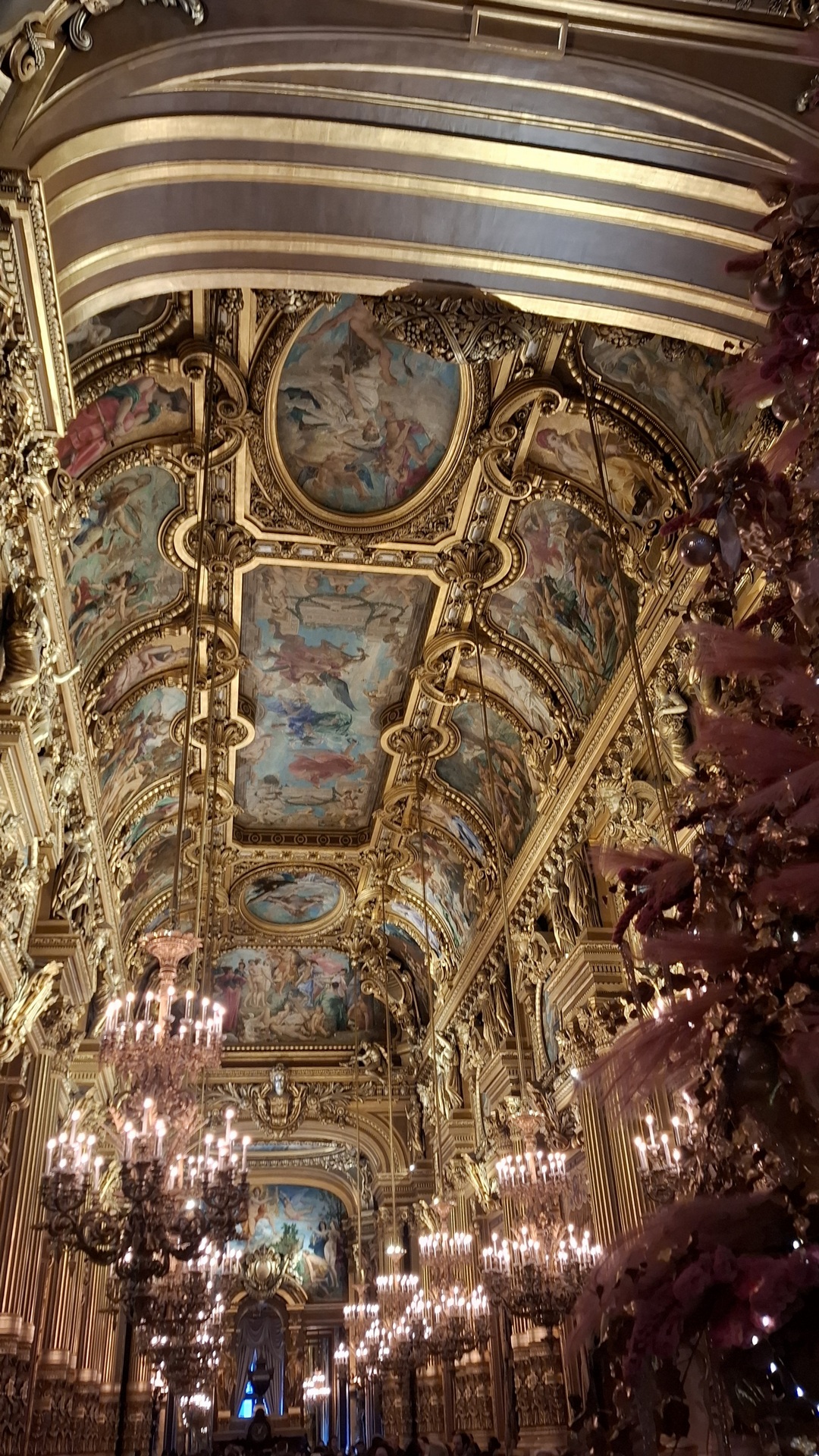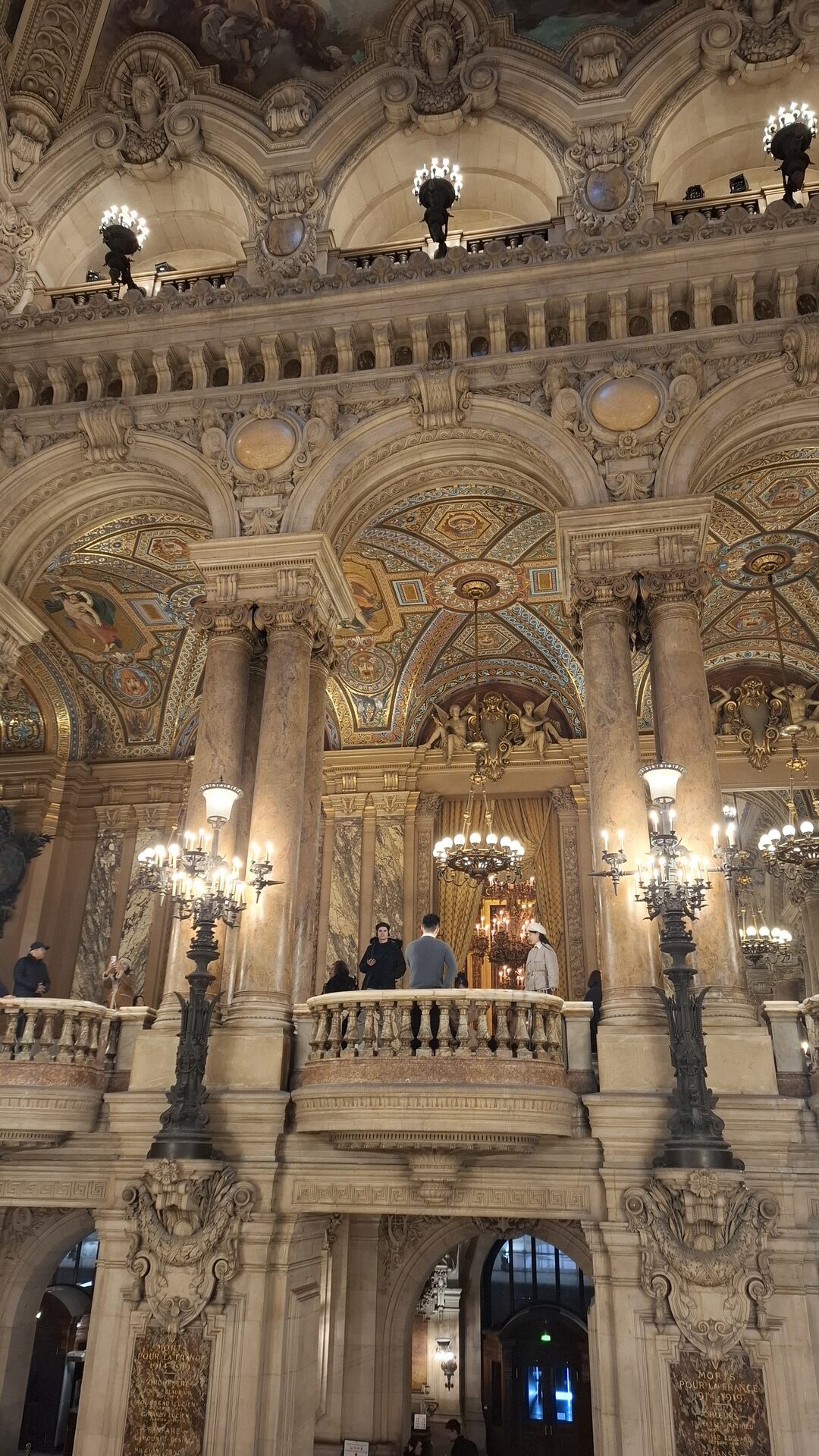 Dès l’entrée, le grand escalier capte toute l’attention. Marbres, dorures, lustres monumentaux, cariatides… Les détails sont partout. On ne sait plus où poser le regard. Chaque montée impose une cadence ralentie. Le regard circule, s’attarde, se perd presque. Impossible de gravir les marches sans prendre son temps.