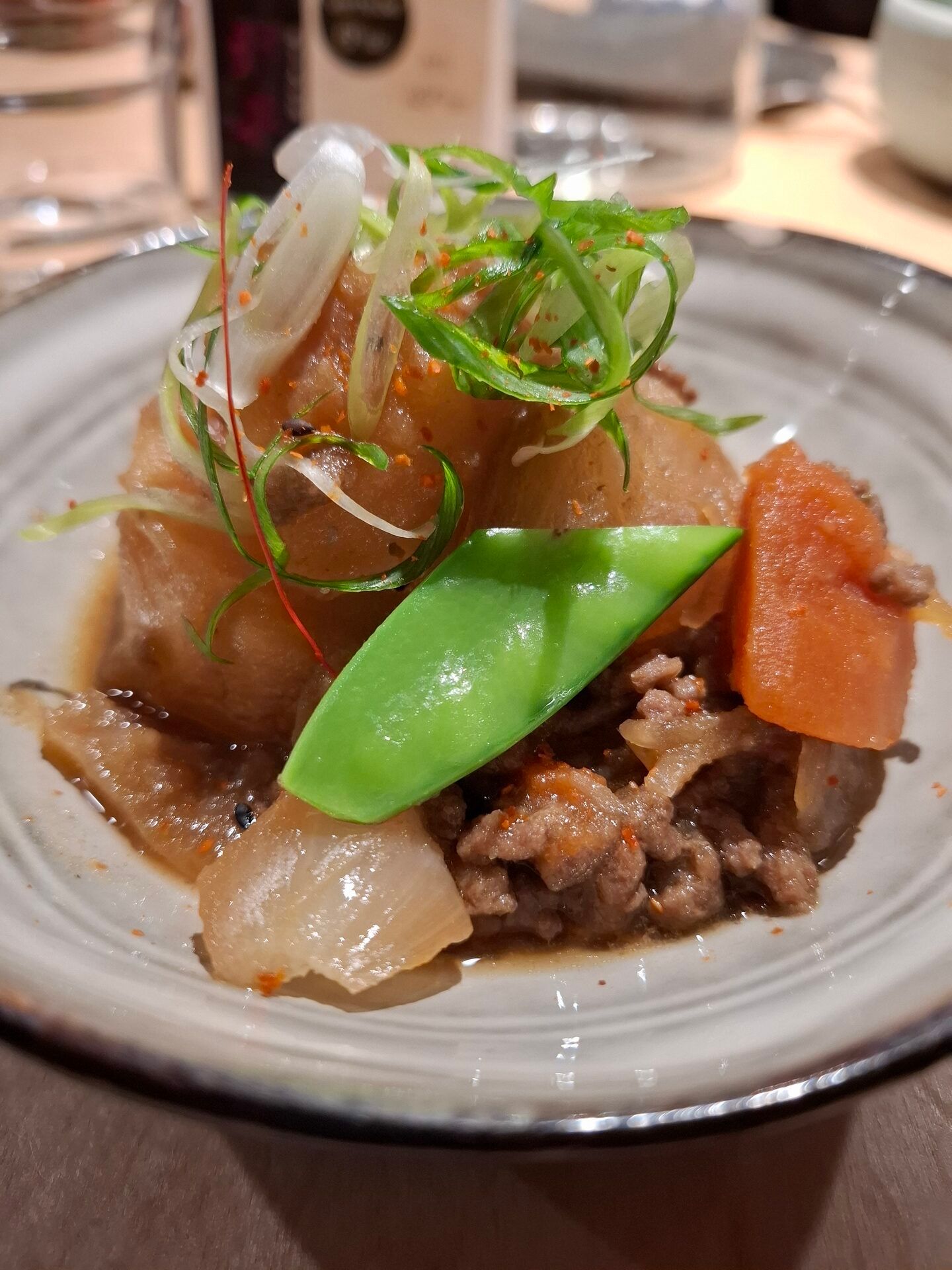 - Mizore-ni d’aubergines : aubergines mijotées surmontées d’une neige de radis blanc