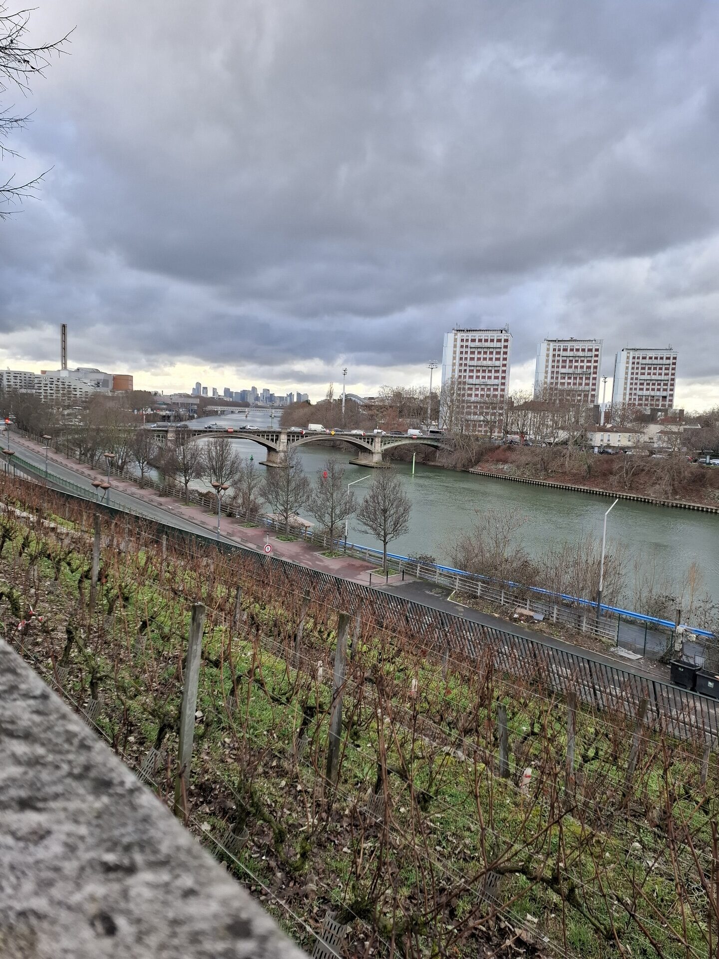 Saviez-vous qu’il existe encore des vignes à Saint-Ouen ? Je les ai rapidement repérées lors d’une promenade le long des quais de Seine. Elles se trouvent en contrebas du parvis de l’église de Saint-Ouen-le-Vieux, dans le prolongement de la place de l’Abbé Grégoire. Plusieurs dizaines de ceps de vigne occupent cet espace en toute discrétion. Leur présence rappelle l’ancienne importance de la viticulture dans la ville.