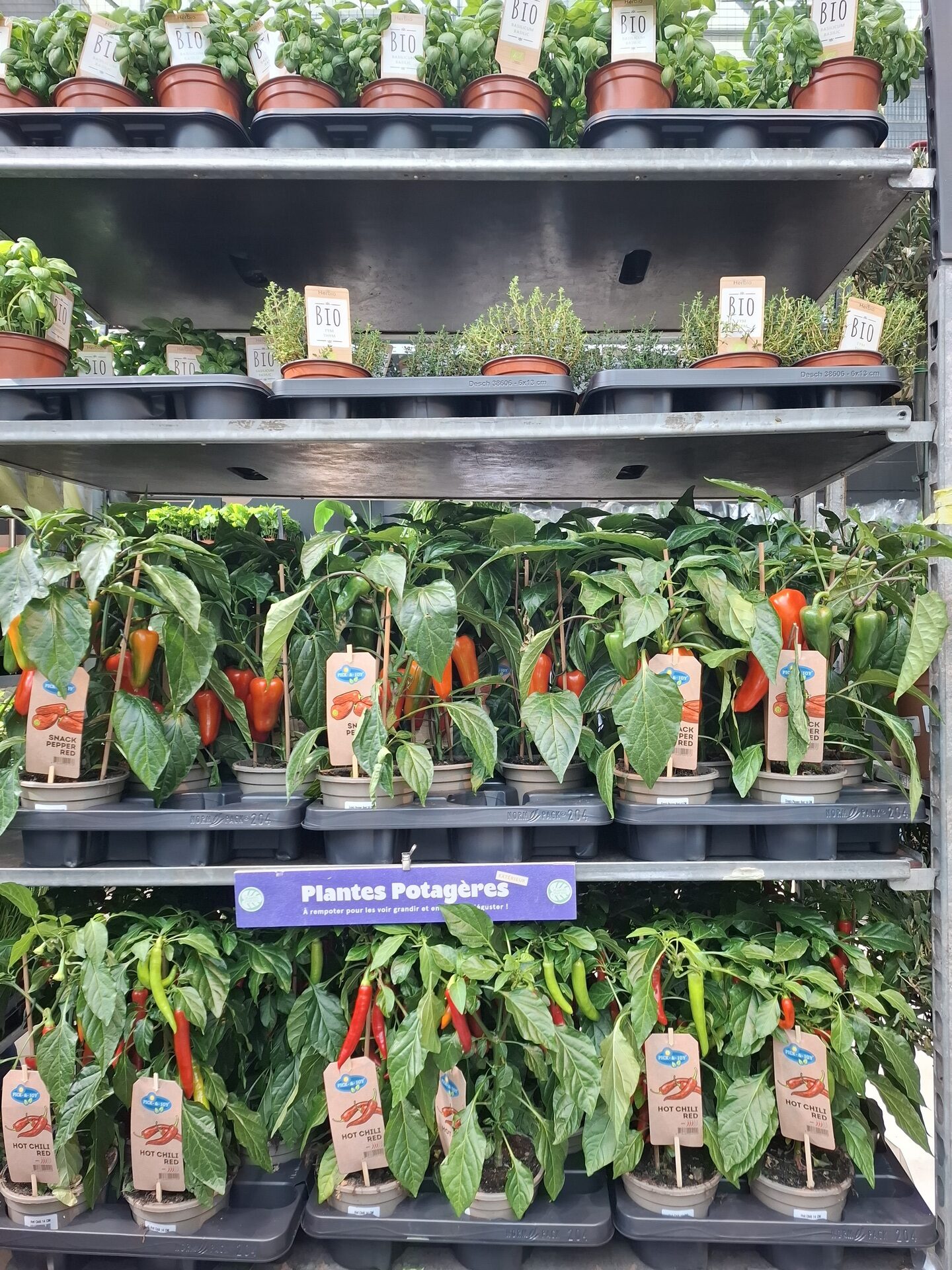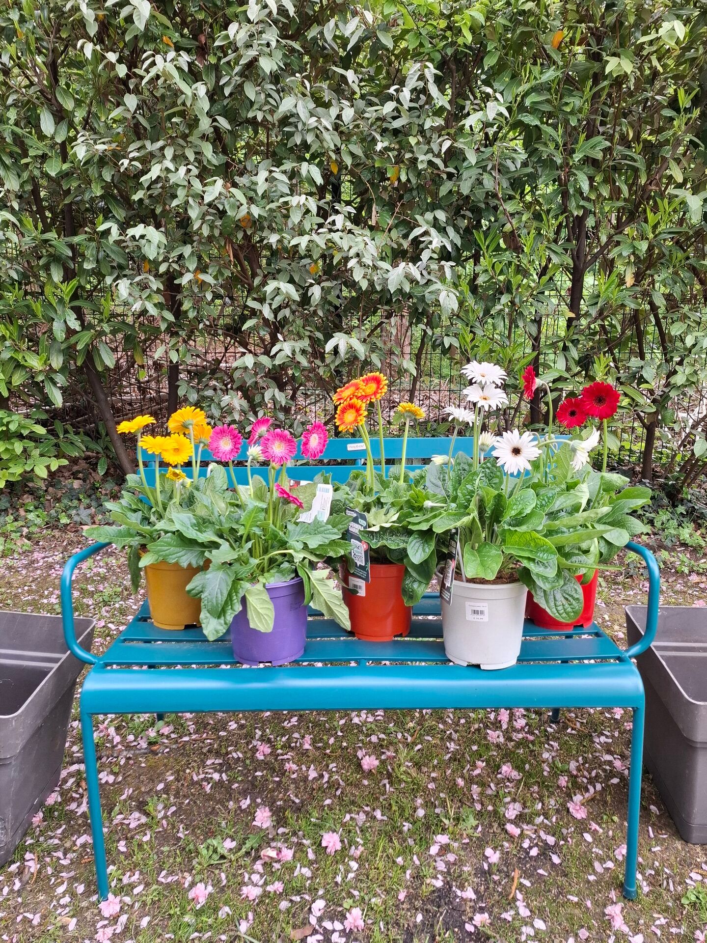 En arrivant, je me suis d’abord dirigée vers les tournesols et la lavande, proposés à moins de 5 € par pot. Puis j’ai changé d’avis en découvrant un rayon entier de Gerbera Garvinea, disponibles en plusieurs couleurs. Je suis repartie avec six pots de cette fleur. Elle coche toutes les cases : colorée, facile d’entretien, résistante au froid, et avec une floraison qui dure longtemps. Je n’ai pas encore décidé de leur emplacement dans le jardin.