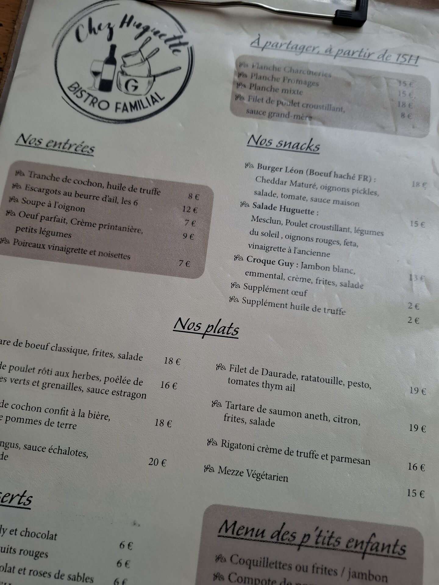 La carte est traditionnelle, avec des plats simples et copieux.