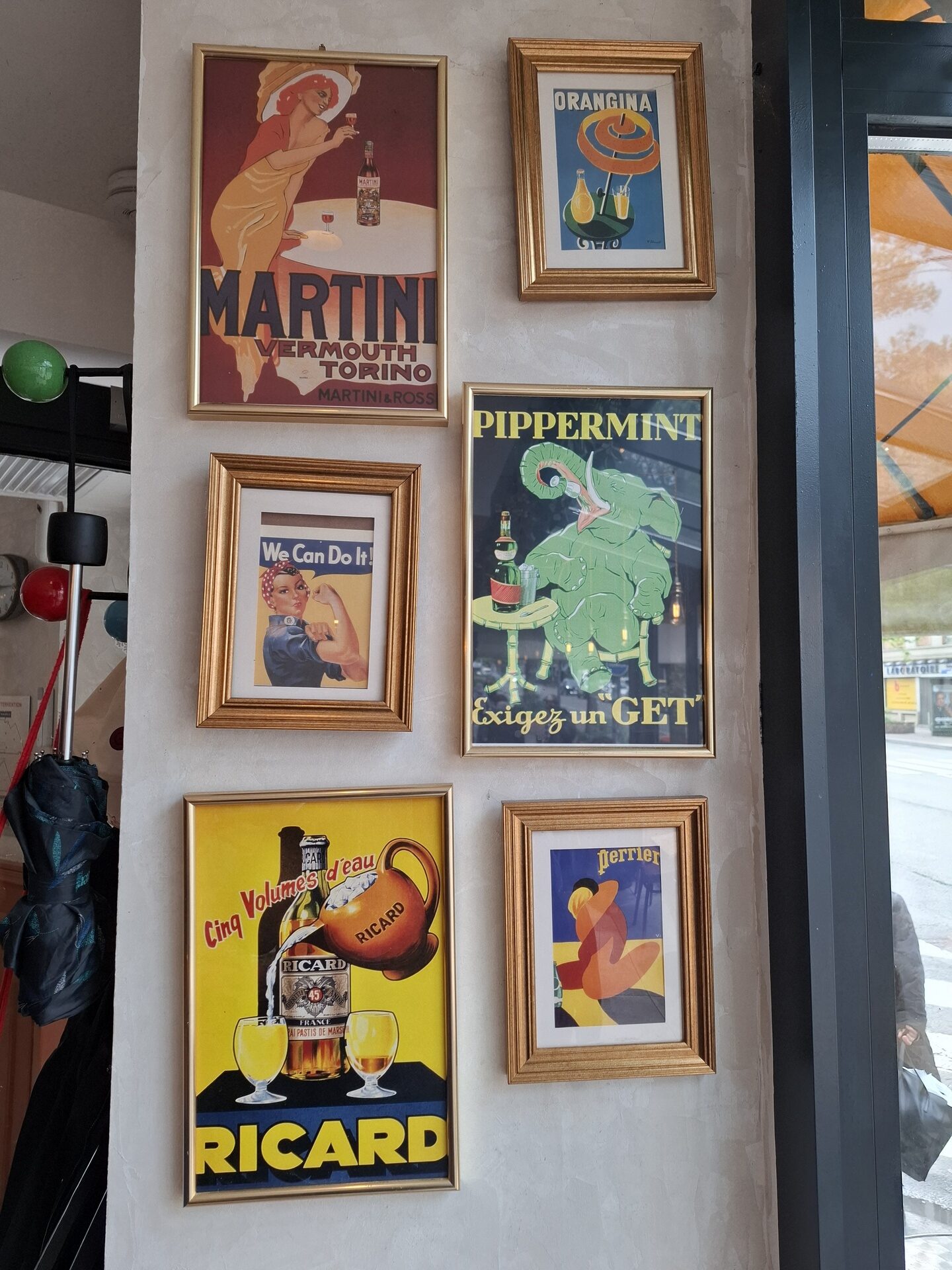 Je remarque rapidement que les affiches qui décorent les murs rappellent des réclames d’une autre époque. En discutant avec le patron, j’apprends qu’Huguette est sa grand-mère. Je comprends que la brasserie lui rend hommage, avec son nom mais aussi avec sa déco. Le plus beau clin d’oeil se situe dans l’escalier qui descend au sous-sol. Les murs sont entièrement tapissés de revues qui lui appartenaient. Ce papier peint improvisé donne un certain cachet.